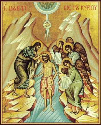 Κατά τις ευαγγελικές περικοπές στις αρχές του 30ου έτους της ηλικίας του Ιησού, ο Ιωάννης (ο Πρόδρομος), γιος του Ζαχαρία και της Ελισάβετ, ο επιλεγόμενος στη συνέχεια Βαπτιστής, που ήταν 6 μήνες μεγαλύτερος του Χριστού, και διέμενε στην έρημο, ασκητεύοντας και κηρύττοντας το βάπτισμα μετανοίας, βάπτισε με έκπληξη και τον Ιησού στον Ιορδάνη ποταμό. Κατά δε τη στιγμή της Βάπτισης κατέβηκε από τον ουρανό το Άγιο Πνεύμα υπό μορφή περιστεράς στον Ιησού και ταυτόχρονα από τον ουρανό ακούσθηκε φωνή που έλεγε ότι: Ούτος εστίν ο Υιός μου ο αγαπητός εν ω ευδόκησα”. Η φράση αναφέρεται στα ευαγγέλια του Ματθαίου, του Μάρκου και του Λουκά, ενώ απουσιάζει από αυτό του Ιωάννη.